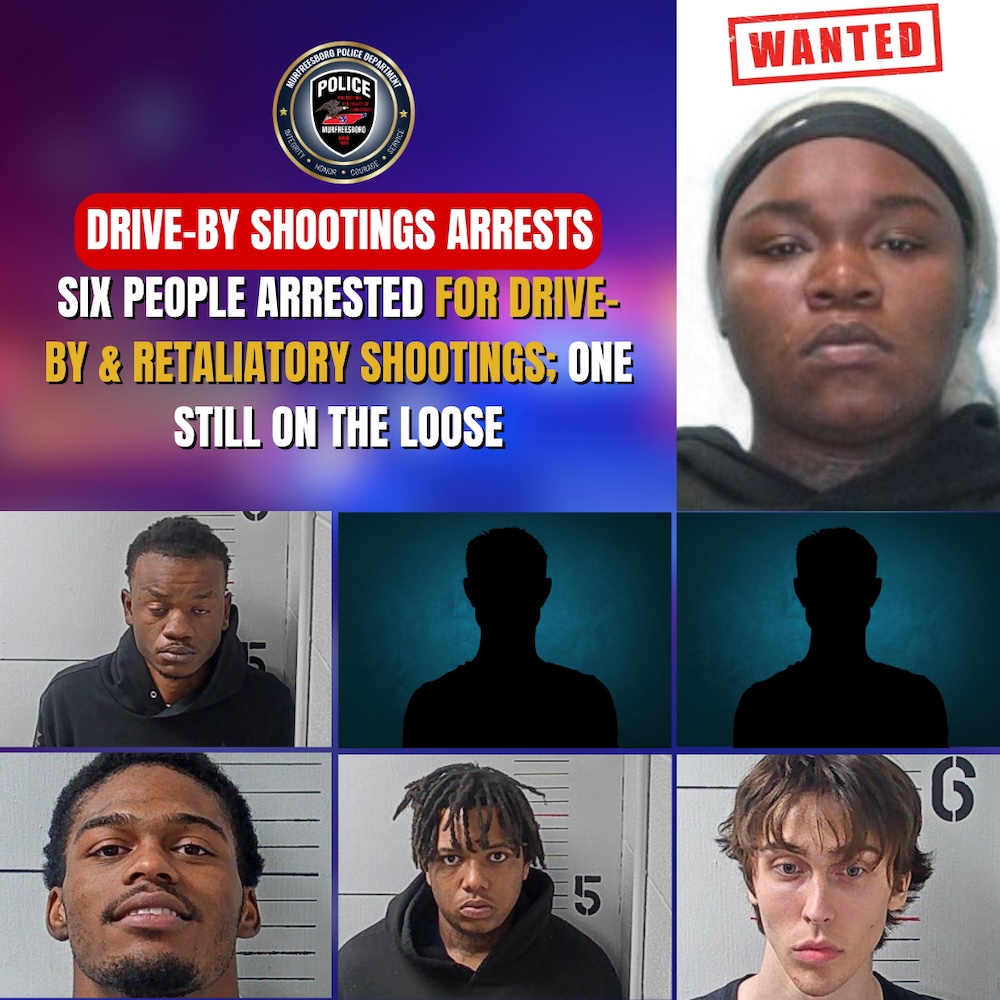 Detectives from the Murfreesboro Police Department Criminal Investigations Division Violent Crimes Unit have arrested six suspects in connection with a series of drive-by shootings and retaliatory shootings that occurred over the past week. An innocent 11-year-old girl was injured in one of the shootings.